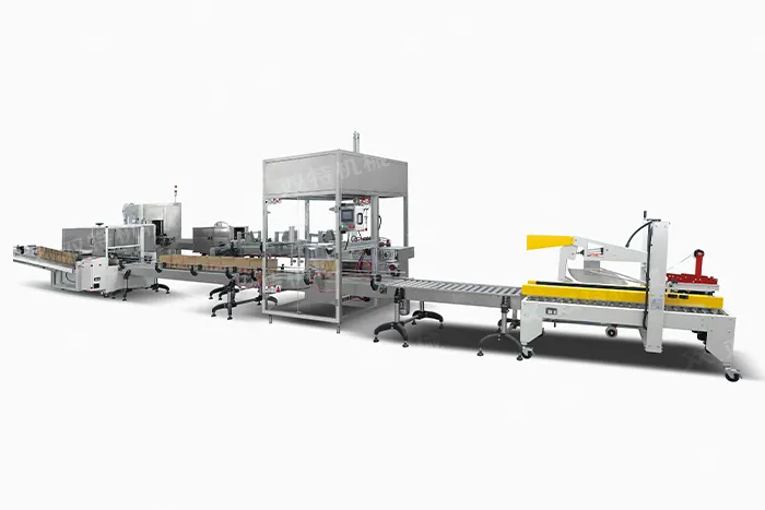 全自动开箱、装箱、封箱机组由开箱机、装箱机、封箱机组合而成,采用模块化设计,具有结构紧凑,调整方便,适用性广泛的特点,可满足小包装的高速生产线配套需要。